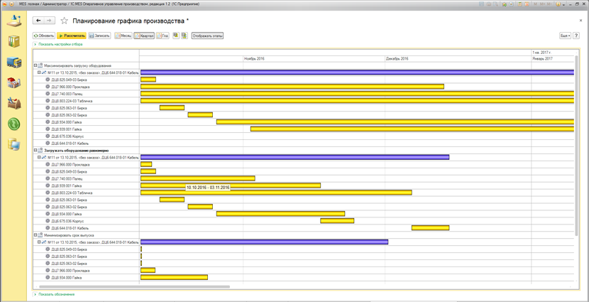 Система 1C: MES максимально приближена к производству, что позволяет программе формировать и редактировать план производства с учетом производственной ситуации и дополнительных ограничений.