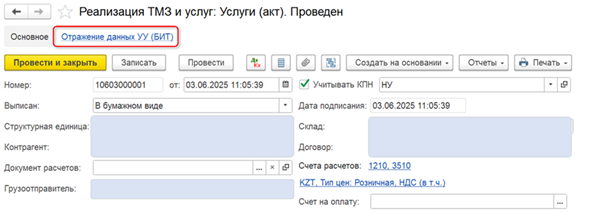 Шаг 2. Документ «Отражение данных УУ» для автоматического формирования управленческих проводок