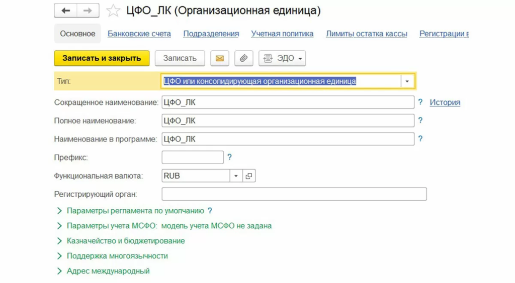 • ЦФО или консолидирующая организационная единица.