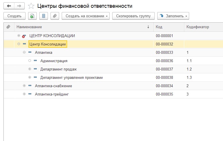 Структура ЦФО в 1С:ERP